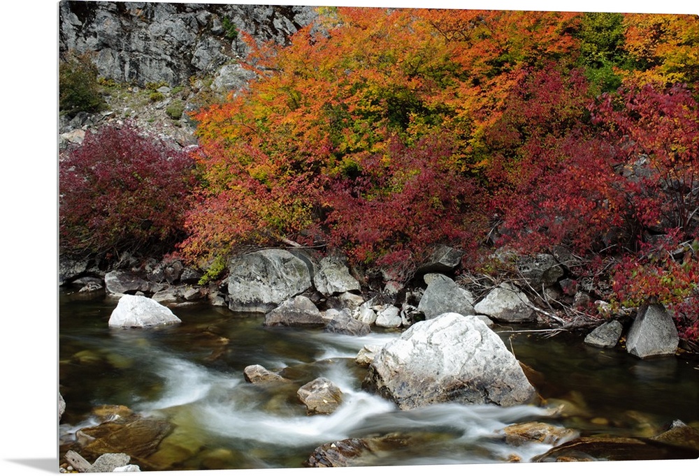 <p>USA, Washington, Hwy 2. Fall along the Nason Creek in the North Cascades.</p>