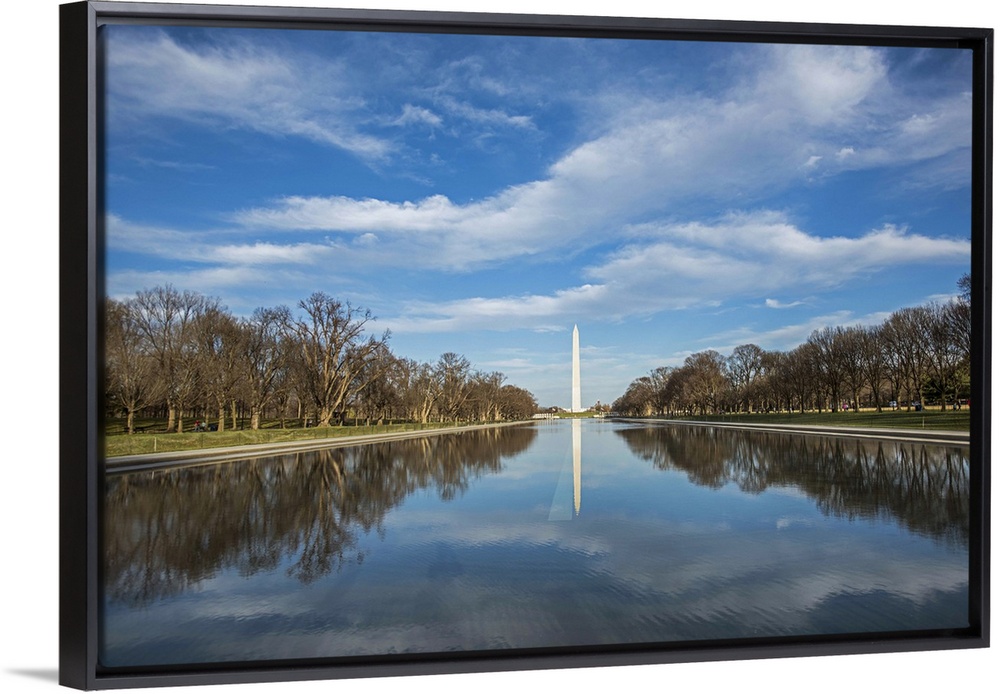 <p>The Washington Monument seen at the end of the Reflecting Pool on the National Mall in Washington, DC.</p>