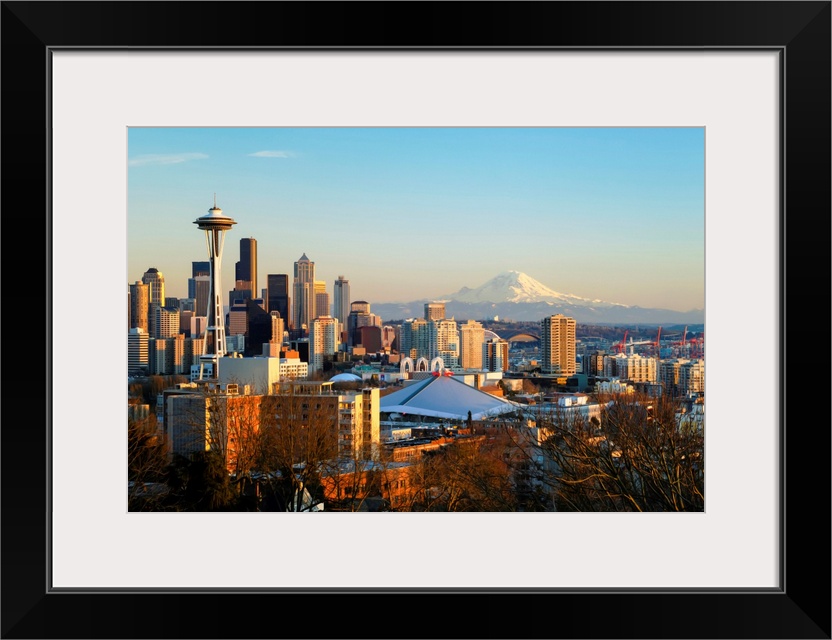 <p>Washington, Seattle, Cityscape Of The Space Needle And Mount Rainier</p>