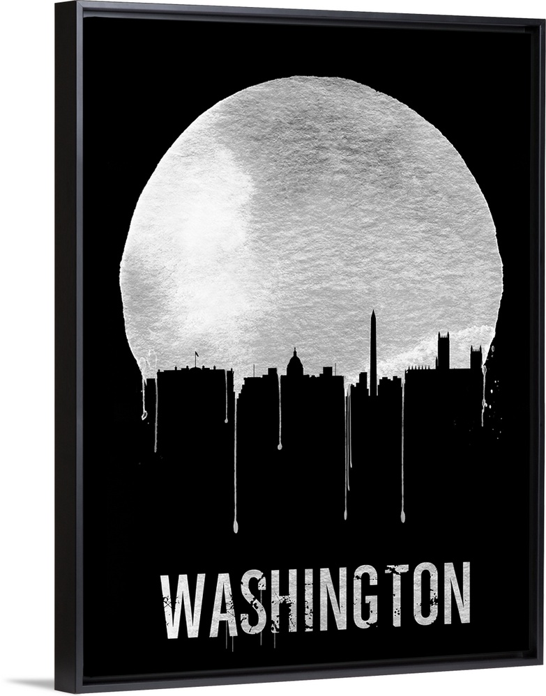 <p>Contemporary watercolor artwork of the Washington DC city skyline, in silhouette.</p>