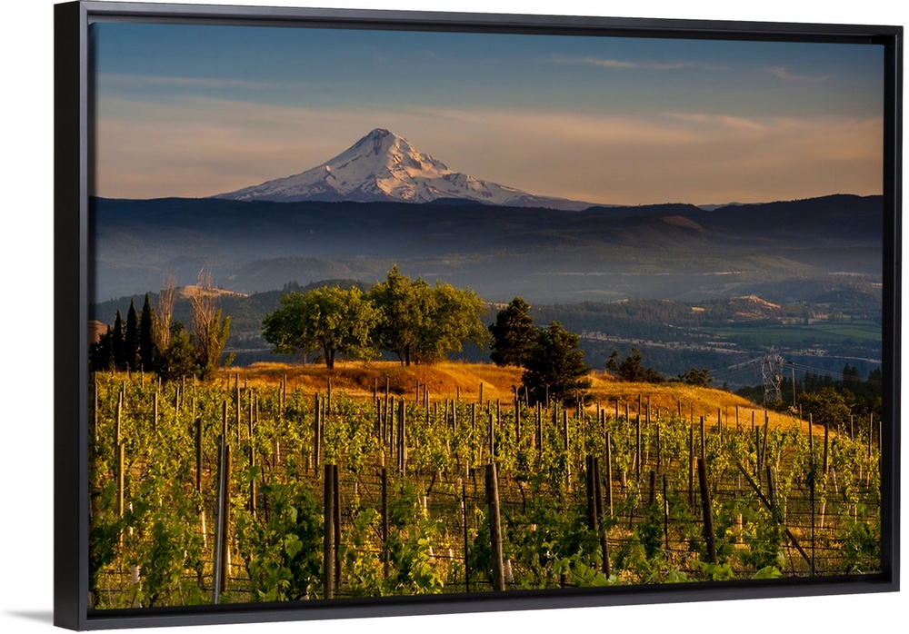 <p>USA, Washington, Lyle. Mt. Hood from Memaloose Wines vineyard along the Columbia River Gorge.</p>