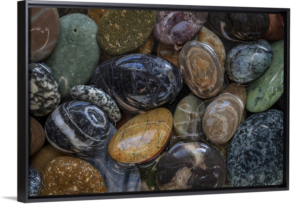 <p>USA, Washington State, Seabeck. Close-up of wet beach stones. Credit: Don Paulson</p>