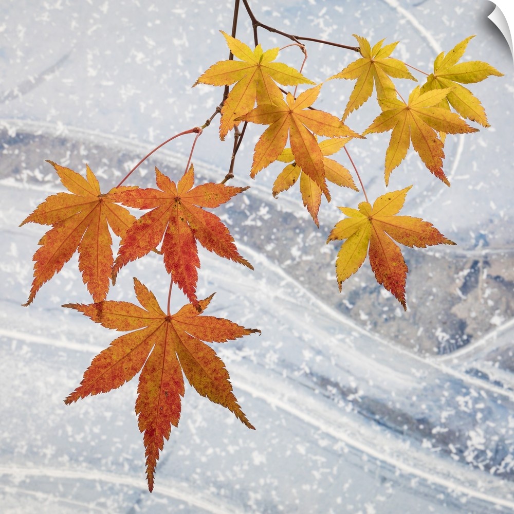 <p>USA, Washington, Seabeck. Japanese maple leaves and ice.</p>