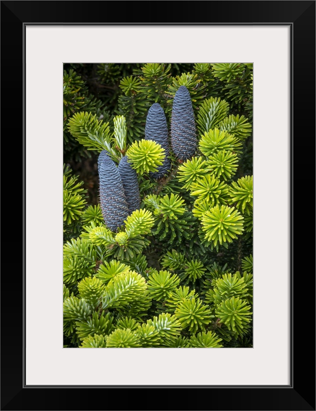 <p>USA, Washington State, Seabeck. Korean spruce tree with cones. Credit: Don Paulson</p>