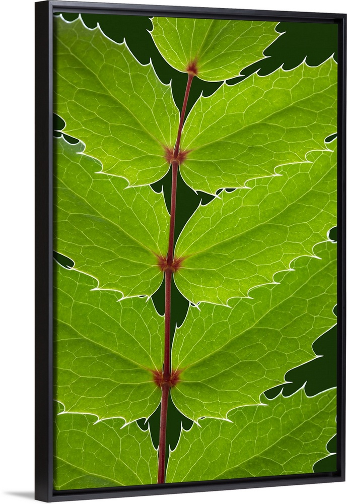 <p>USA, Washington State, Seabeck. Oregon grape leaves close-up. Credit: Don Paulson</p>