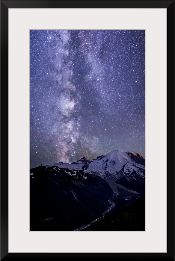 <p>USA. Washington State. The Milky Way looms above Mt. Rainier and the White River at Mt. Rainier NP near Sunrise.</p>