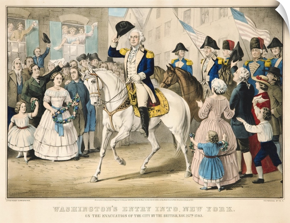 <p>Washington's entry into New Yrok on the evacuation of the city by the British on Nov. 25th 1783, 1857 by Currier, N. (1813-88) and Ives, J.M. (1824-95)</p>