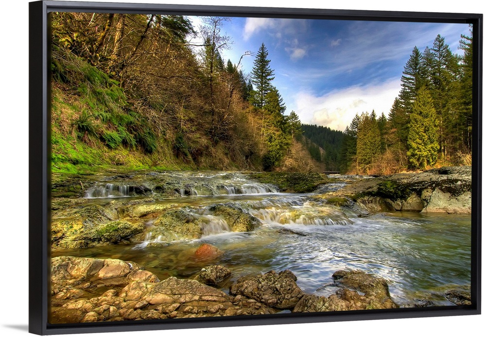 Elevate your home or office décor by adding a modern floating frame to your canvas art print. Finishing your gallery wrapped canvas with a floating frame enhances the beauty and detail of our giclée art prints. Handcrafted from solid wood, and available in multiple finish colors, there’s sure to be a frame to accent your canvas art print.