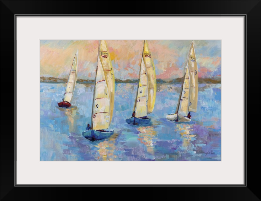 Art Coastal Blue Wall Art Contemporary Art Painting Sailing Transportation Boat Jeanette Vertentes