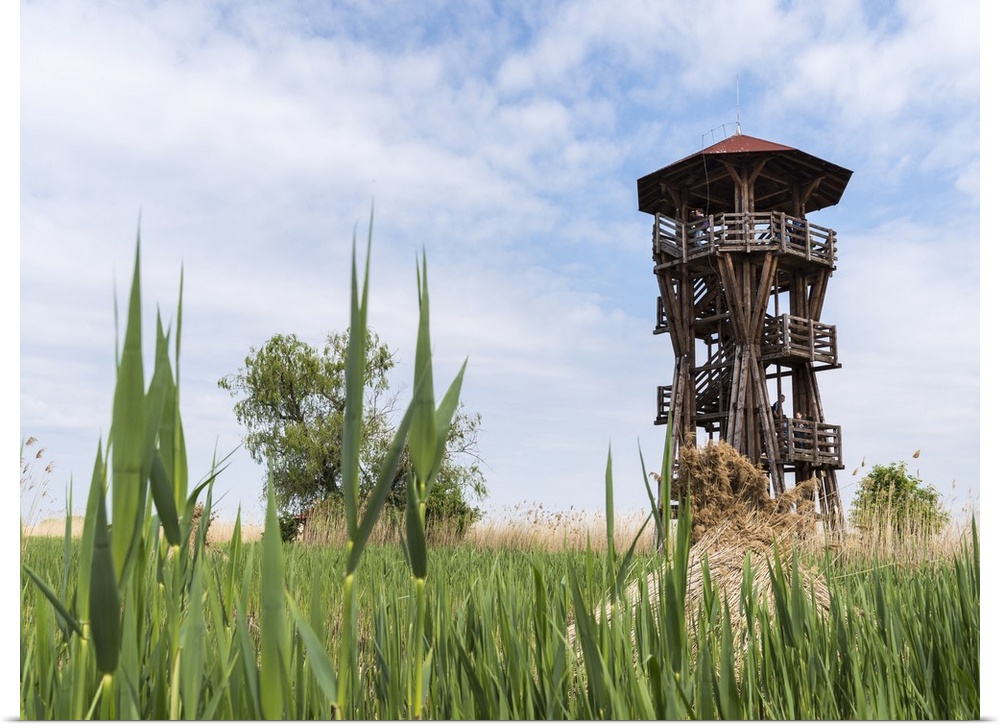<p>Watch tower at the fish ponds of Hortobagy in the Hortobagy National Park during spring, UNESCO, Hungary.</p>
