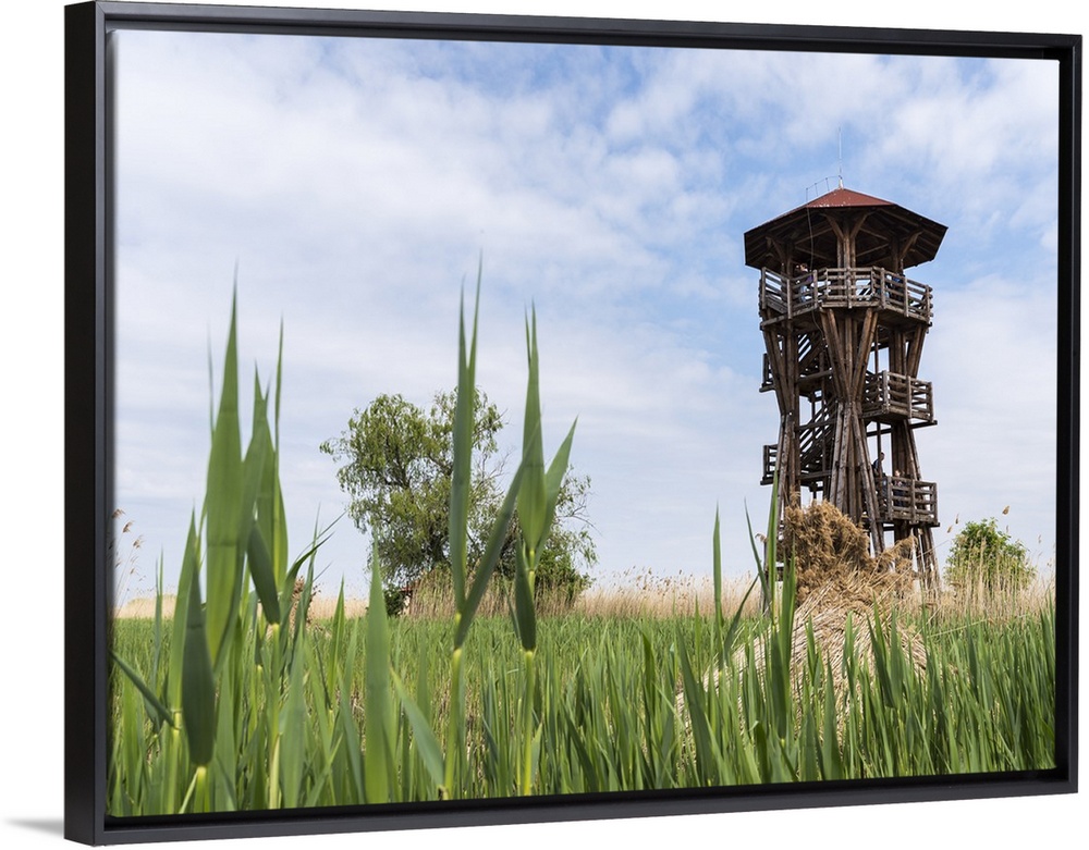 <p>Watch tower at the fish ponds of Hortobagy in the Hortobagy National Park during spring, UNESCO, Hungary.</p>