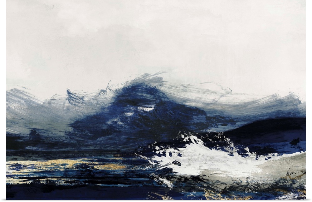 <p>Abstract painting with dark navy blue and white, resembling crashing waves.</p>