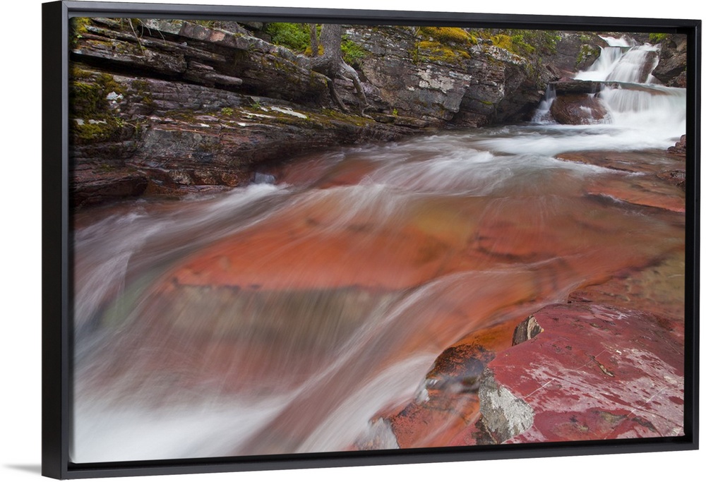 <p>Water cascades down the red rock of Virginia Creek in Glacier National Park, Montana, USA</p>