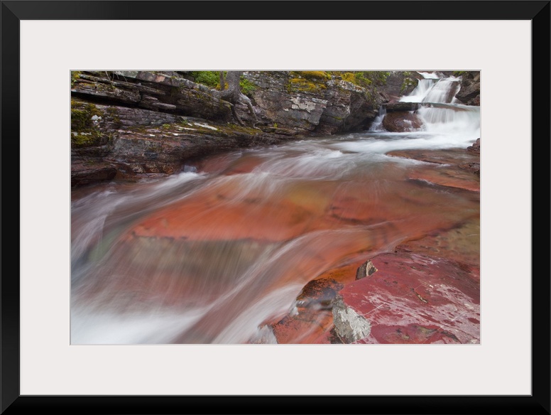 <p>Water cascades down the red rock of Virginia Creek in Glacier National Park, Montana, USA</p>