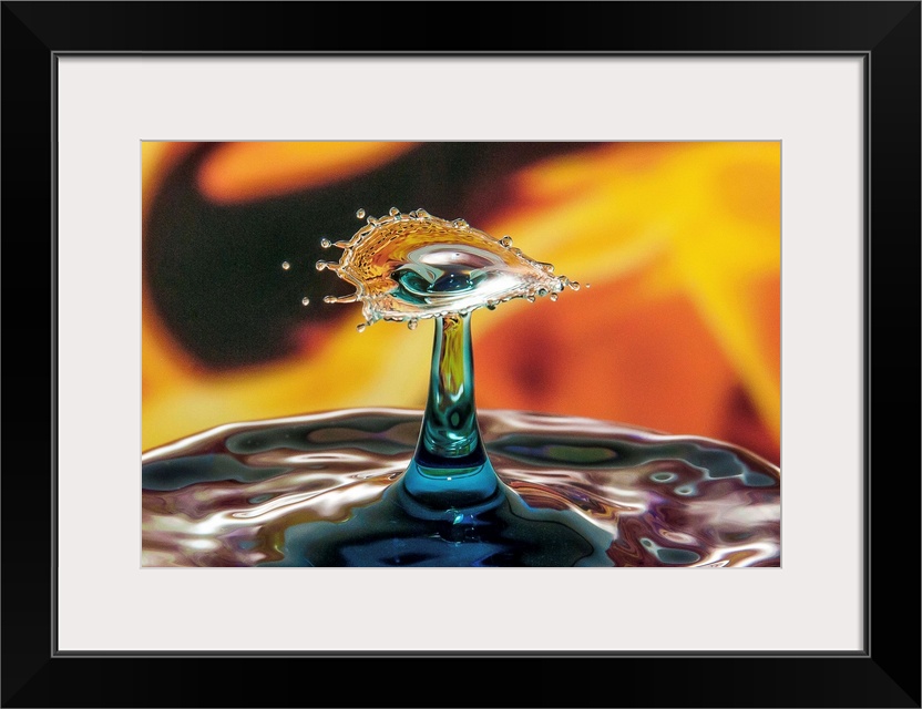<p>This collision consists of 3 water droplets dropped within 300 milliseconds of each other, the back ground is a printed image of a fire. The water was splashing into a wine glass full of coloured water.</p>