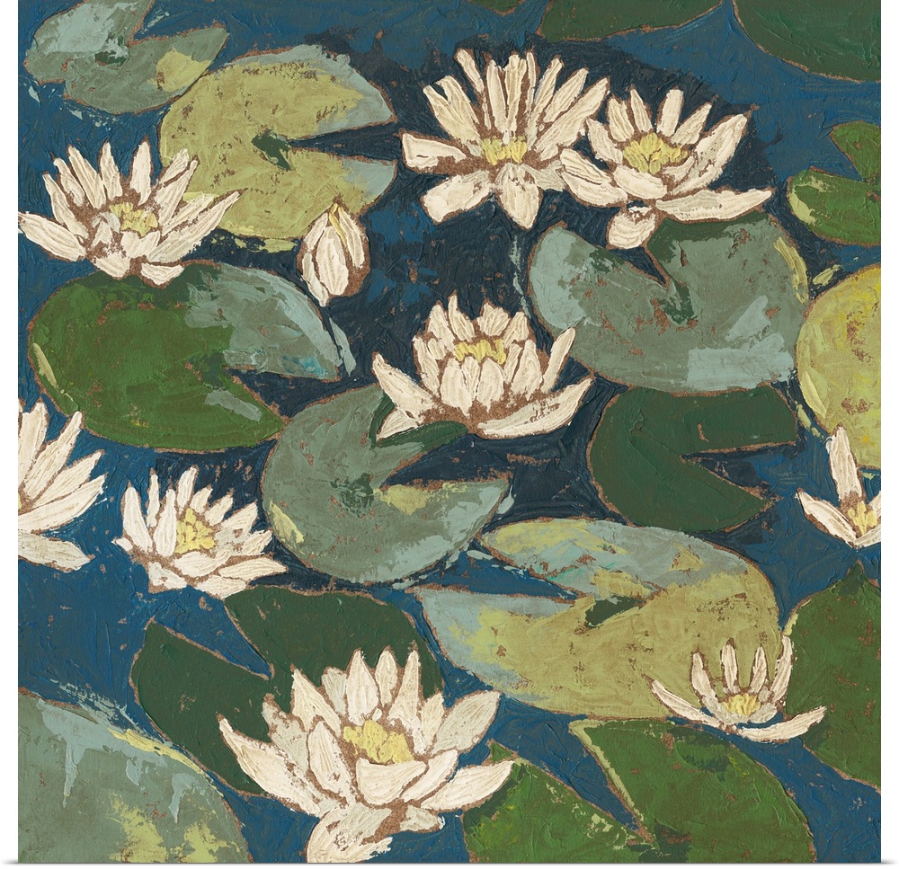 Art Transitional Japandi Wall Art Decorative Art Florals Water Lily Green Wall Art Megan Meagher Painting