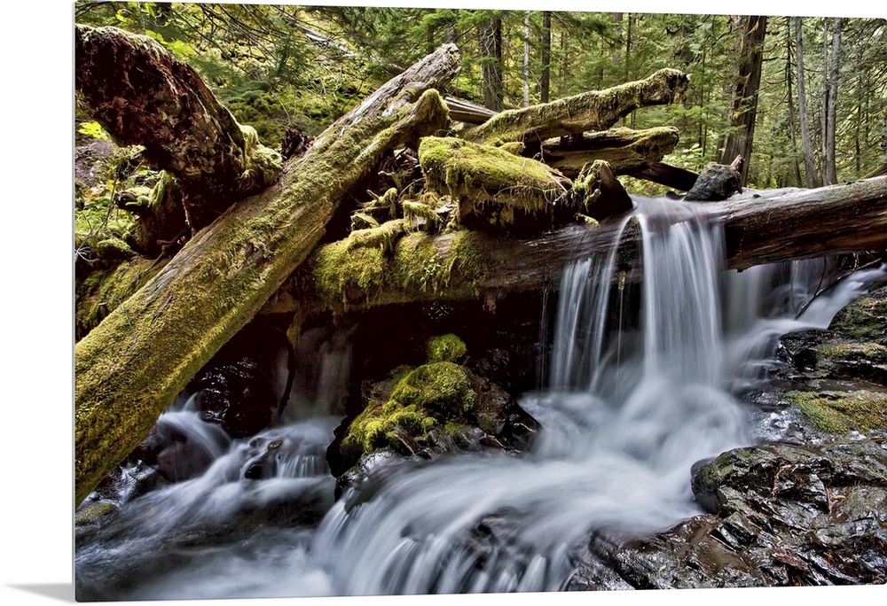 <p>Massive logjam creates silky waterfall in Panther Creek, Washington state.</p>