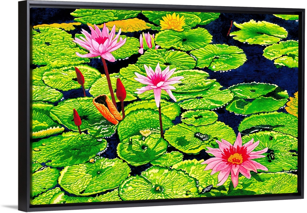<p>Contemporary painting of a flowering water lilies in a pond.</p>