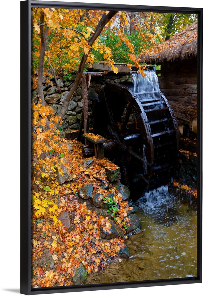 <p>Water mill and autumn color at namsangol traditional folk village, seoul, South Korea.</p>