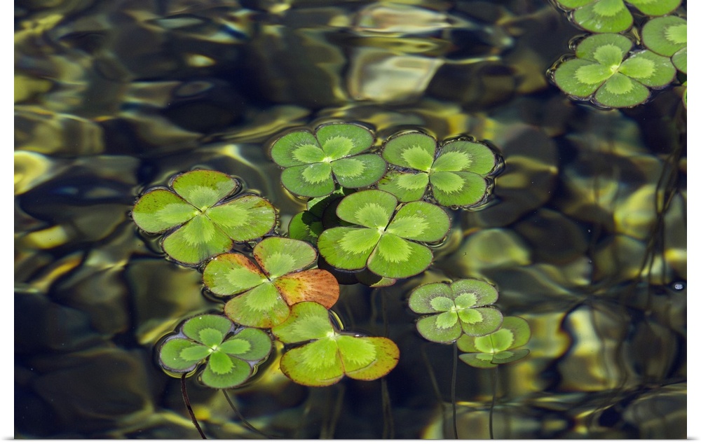 <p>Water shamrock (Marsilea quadrifolia), an aquatic fern. Photographed in Texas, USA.</p>