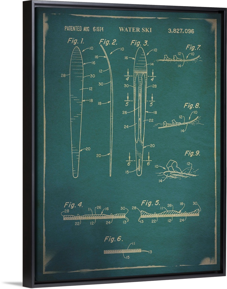 <p>Blueprint diagram depicting the parts of a water ski.</p>