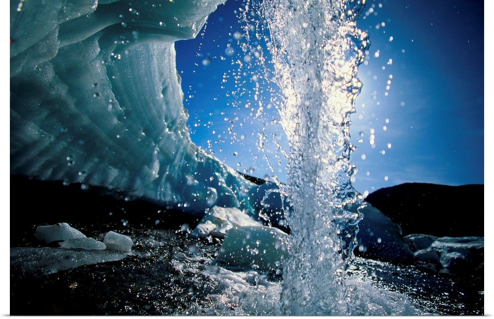 <p>Water splashes over a sheet of ice on Wolf Creek in Canada's Ivvavik National Park.</p>