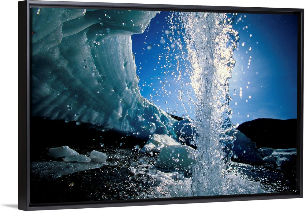 <p>Water splashes over a sheet of ice on Wolf Creek in Canada's Ivvavik National Park.</p>
