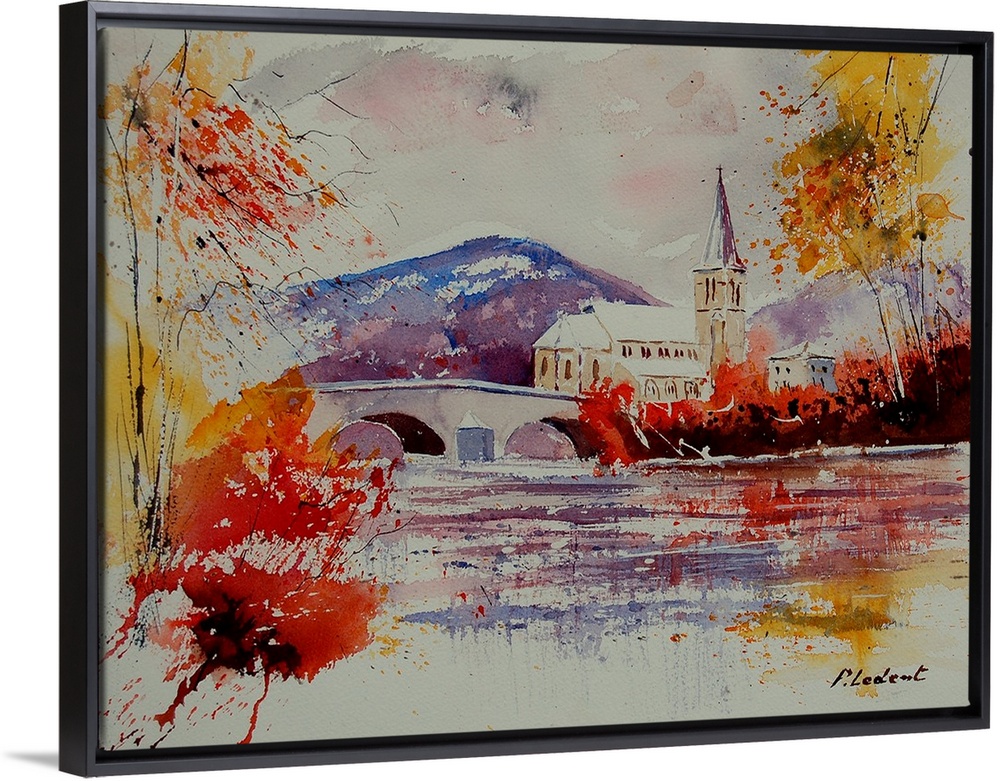 <p>Delicate watercolor landscape of a small village in Belgium.</p>