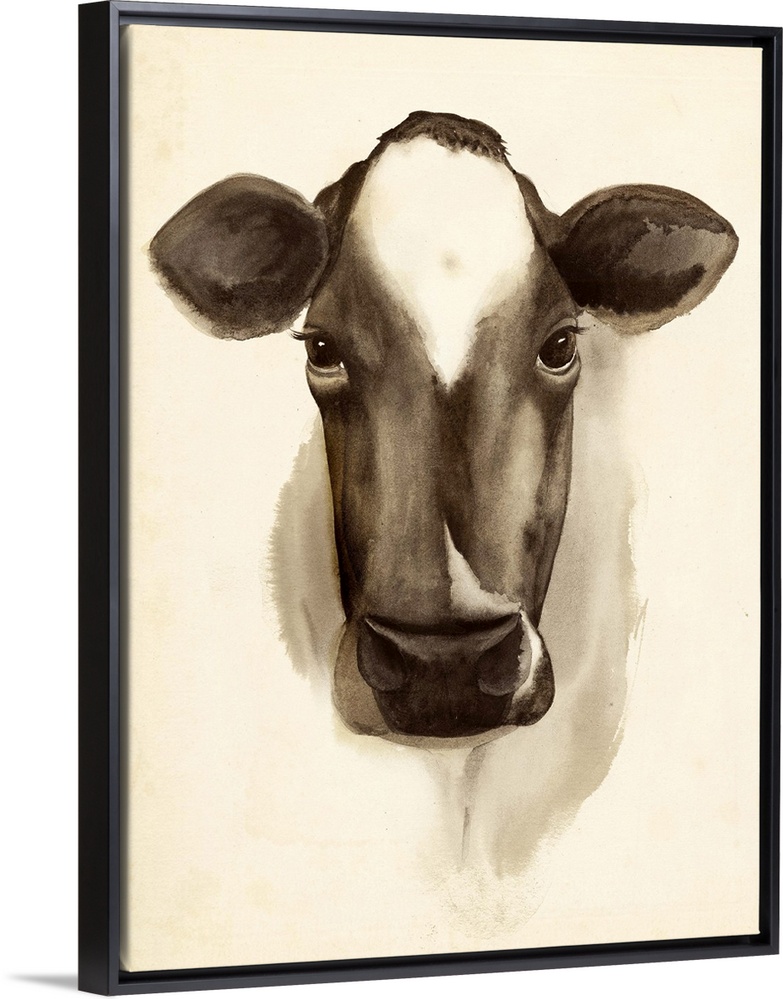 <p>Watercolor portrait of a cow in sepia tones.</p>