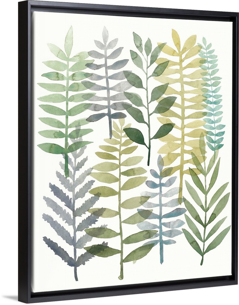 <p>Watercolor painting of stalks of long frond of leaves.</p>
