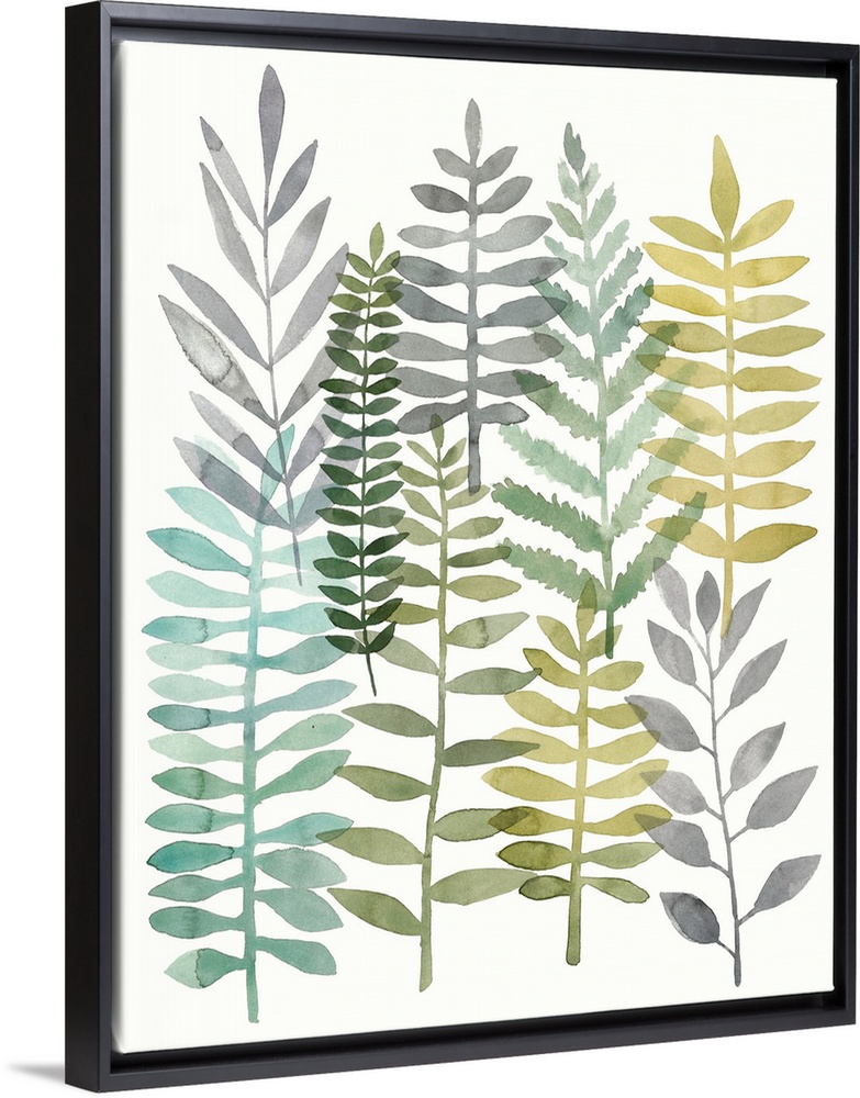 <p>Watercolor painting of stalks of long frond of leaves.</p>