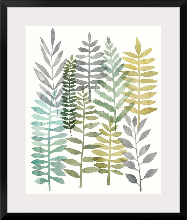 <p>Watercolor painting of stalks of long frond of leaves.</p>