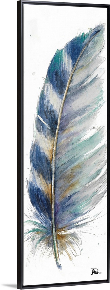 <p>Contemporary watercolor painting of a feather against a white background.</p>