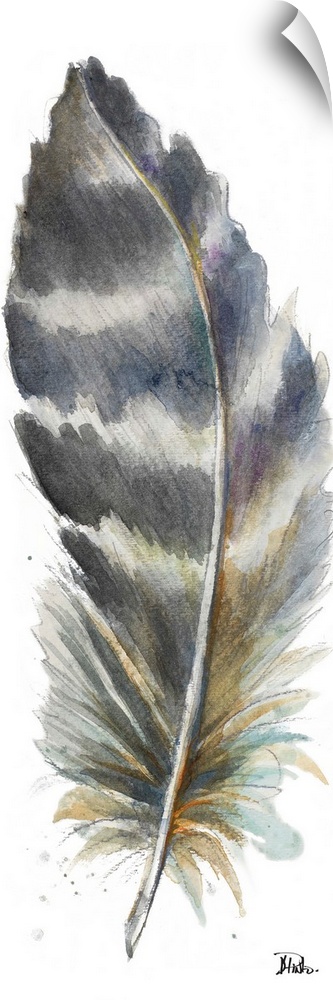 <p>Contemporary watercolor painting of a feather against a white background.</p>