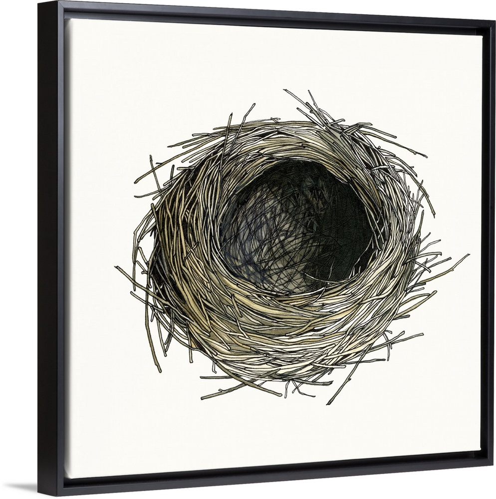 <p>Contemporary watercolor painting of a birds nest against a white background.</p>