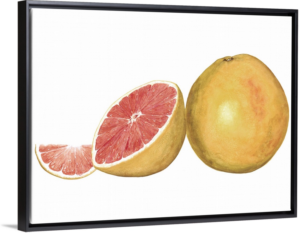 <p>Watercolor painting of a whole and halved grapefruit against a white background.</p>
