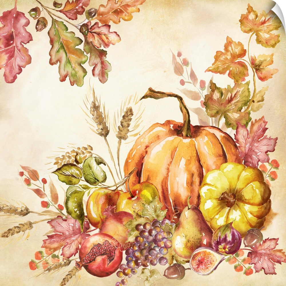 Art Decorative Art Food and Drink Vegetables Pumpkin Thanksgiving Painting Tre Sorelle Studios Watercolor