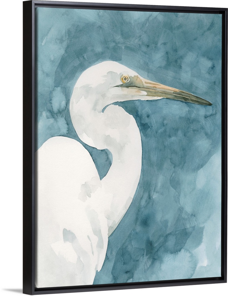Art Coastal Blue Wall Art Emma Caroline Contemporary Art Painting Watercolor Wildlife Bird Heron and Egret