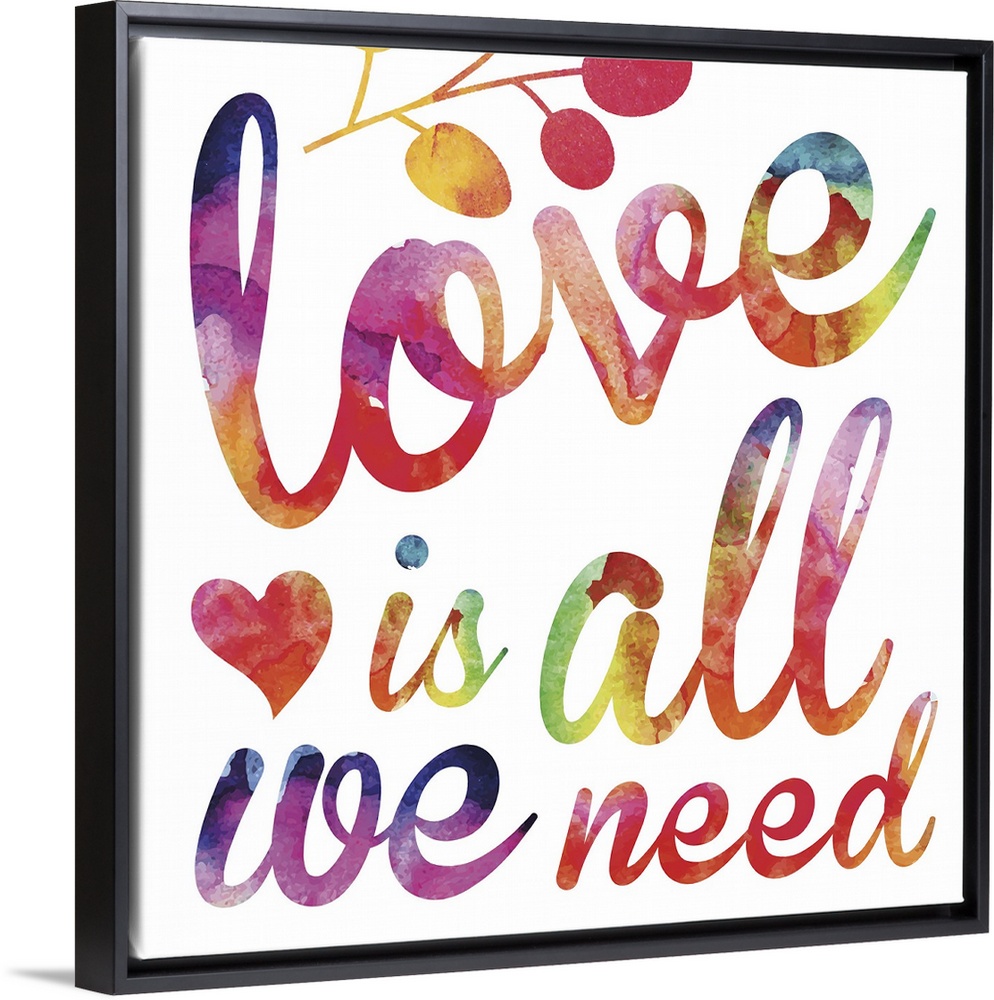 <p>"Love is all we need" in script lettering in rainbow watercolors.</p>