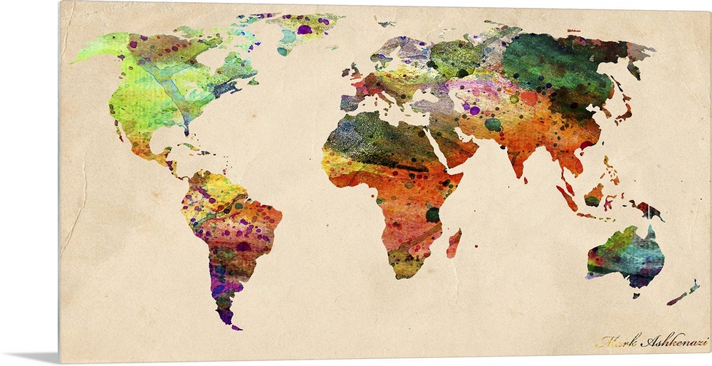 <p>Contemporary artwork of an artistic wold map in watercolor</p>