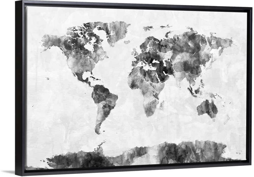 <p>A bright and colorful watercolor world map with country borders.</p>