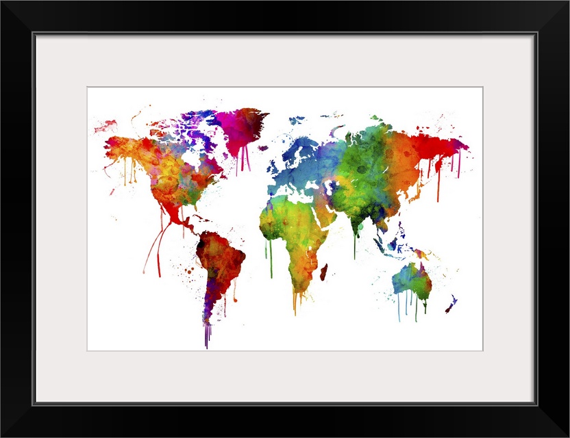 <p>A bright and colorful watercolor world map.</p>