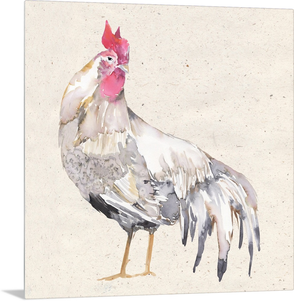 <p>The ever-popular rooster is rendered in a soft watercolor treatment with a neutral palette.</p>