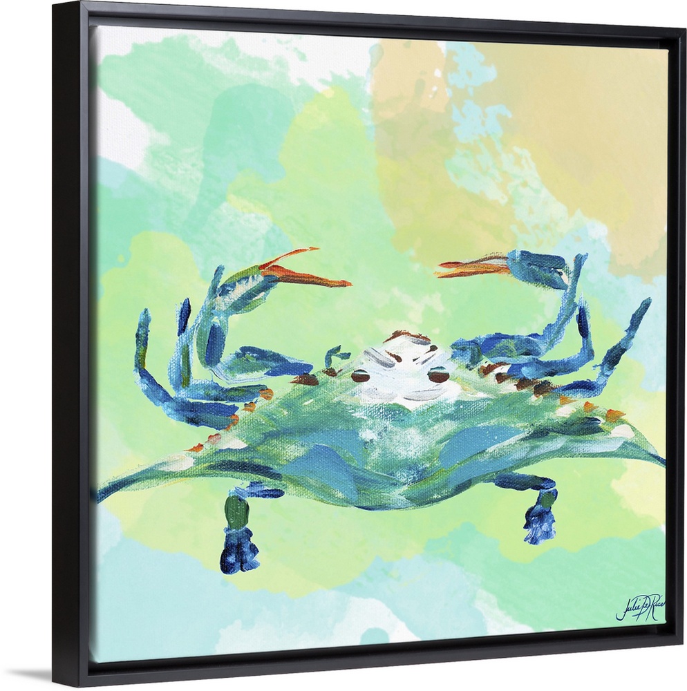 Art Beach House Décor Decorative Art Julie DeRice Green Wall Art Painting Watercolor Wildlife Marine Life Crab