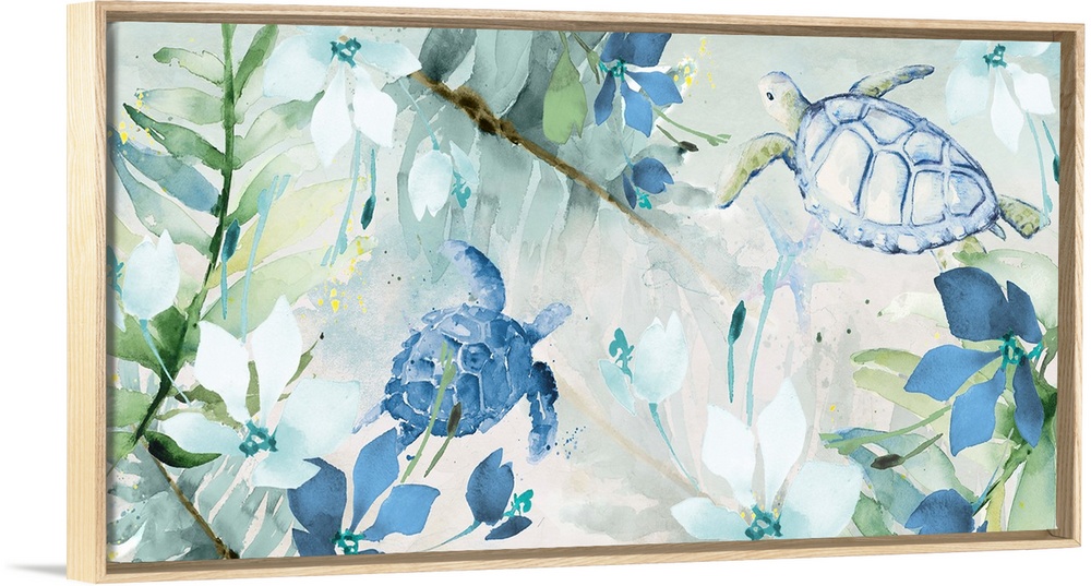 Art Blue Wall Art Decorative Art Florals Lanie Loreth Painting Tropical Watercolor Wildlife Marine Life Turtle