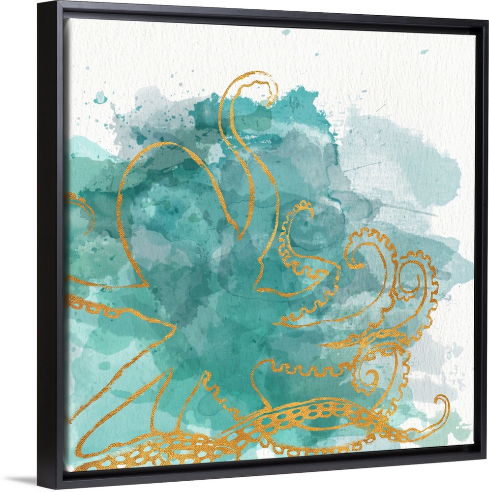 Art Blue Wall Art Aqua Decorative Art Julie DeRice Painting Watercolor Wildlife Marine Life Octopus and Squid