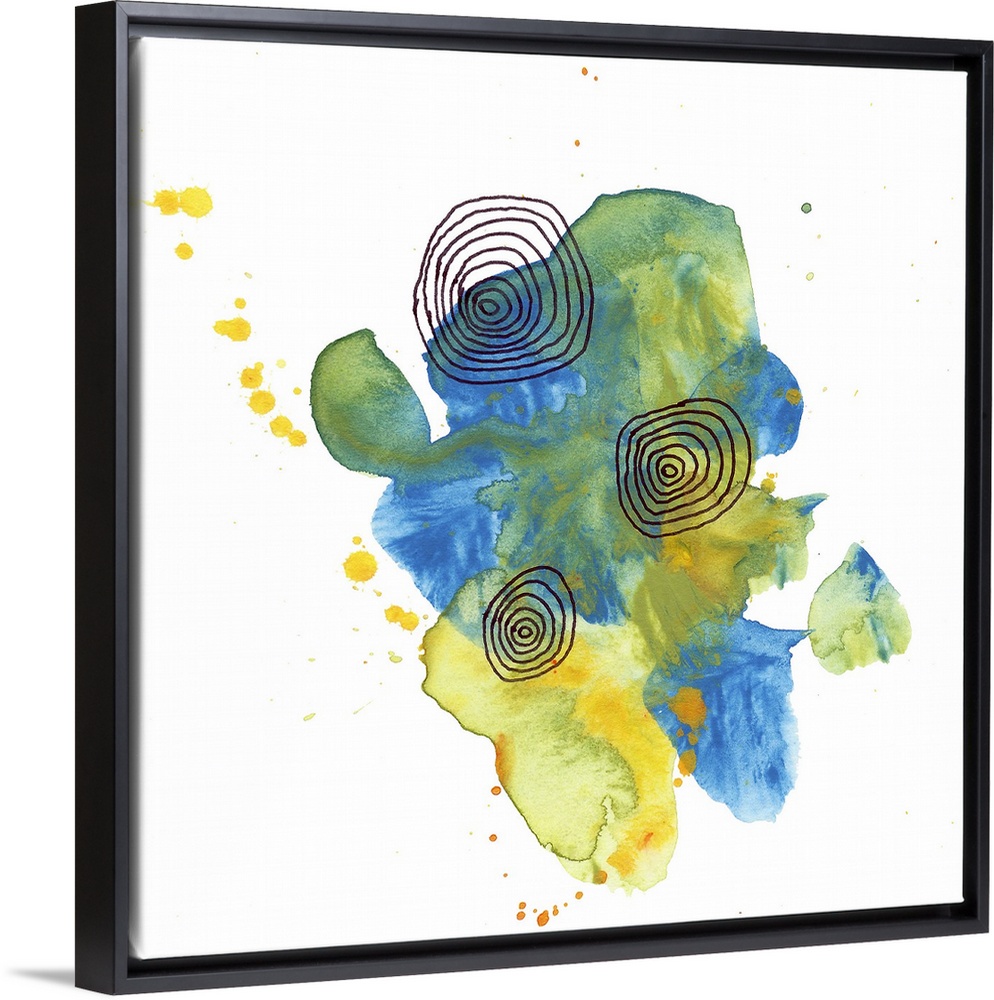 <p>Paint blotches clustered in the middle with concentric circles digitally drawn over top.</p>
