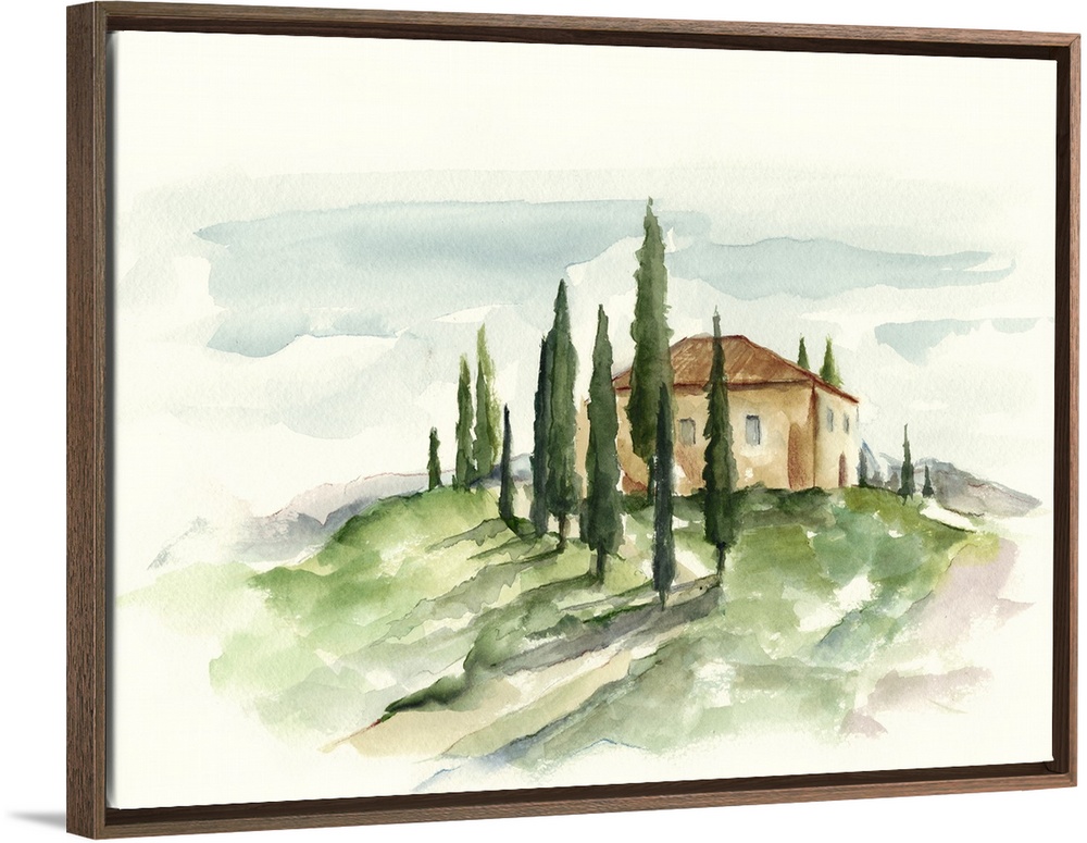 <p>This watercolor artwork illustrates the beauty and simplicity of a Tuscan countryside with contrasting warm and cool colors in harmony.</p>
