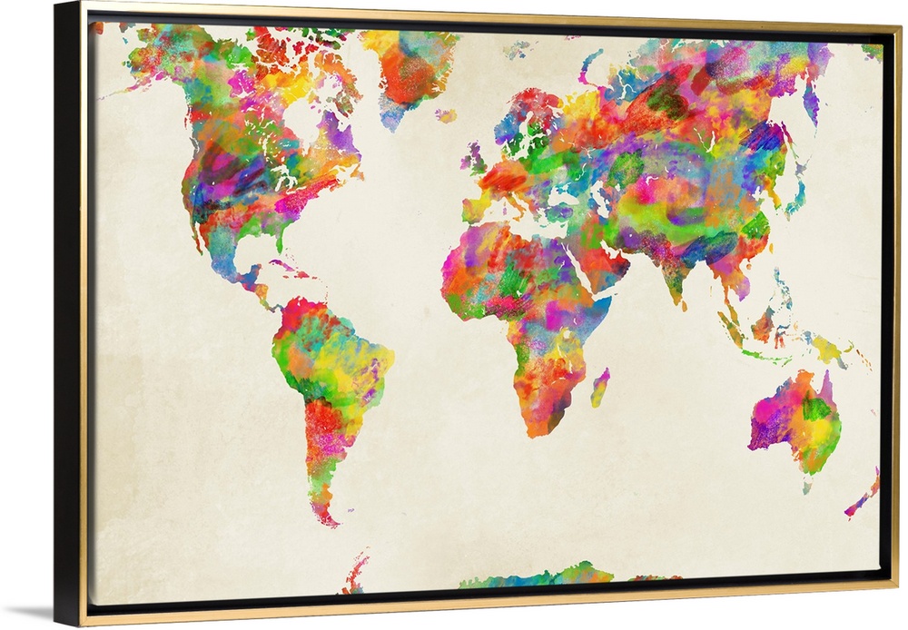 <p>Colorful watercolor map of the World on a neutral background.</p>