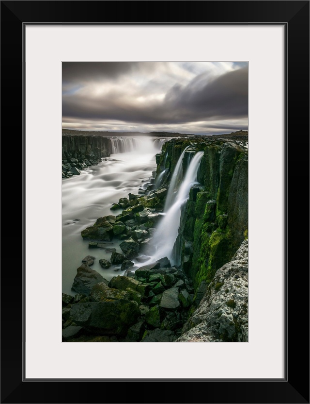 <p>Waterfall flowing over moss covered cliffs; Selfoss, Iceland</p>